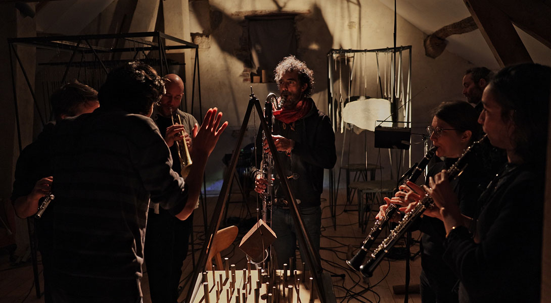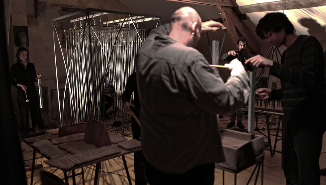 rencontre entre les sept musicins de liken, une éclairiste et mes sculptures sonores